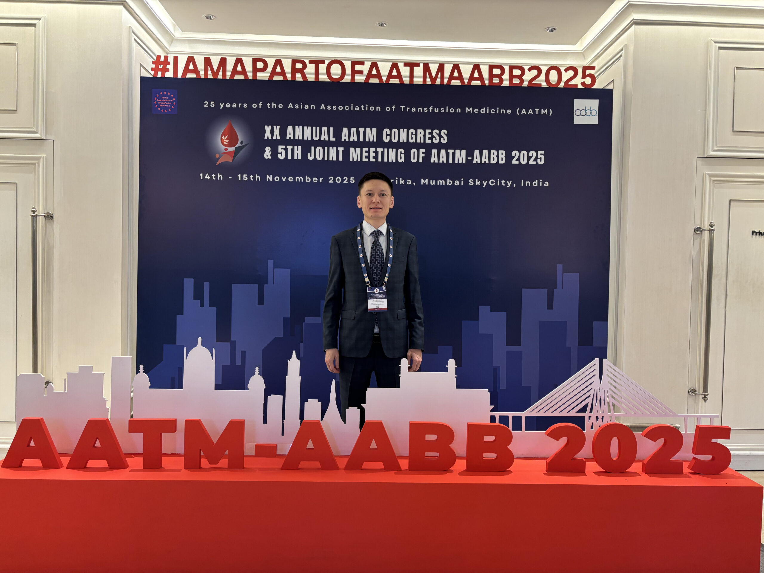 14–15 қараша 2025 жылы Үндістанның Мумбаи қаласында 🇮🇳 өткен Трансфузиялық медицина жөніндегі Азиаттық қауымдастықтың ХХ Халықаралық конгресі және ААТМ–ААВВ-ның 5-ші бірлескен отырысы аясында біздің орталықтың өкілі, РМҚК «Трансфузиологияның ҒӨО» Стратегиялық және инновациялық даму басқармасының басшысы, ААТМ Қазақстандық елдік бөлімшесінің Төрағасы Уалиев Сабит Дарханович Қазақстан қан қызметінің жұмысы туралы баяндама жасады 🩸🇰🇿